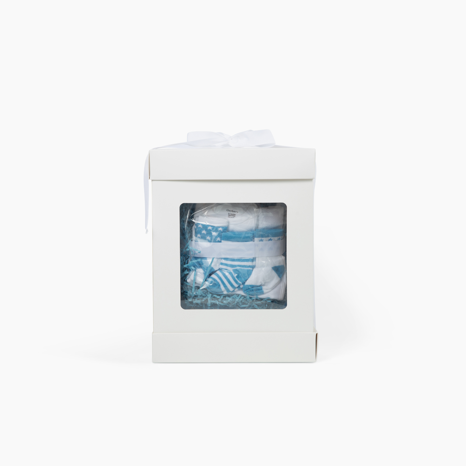This baby shower gift set, which is beautifully designed to look like a tiered cake, is distinguished by its festive paper shreds, polka-dot ribbon, and clear basket wrap with a bow on top. It is ready to give, requires no assembly, and is a gorgeous focal point for hospital visits, gender reveals, and baby showers. This baby diaper cake is the ideal fusion of fashion, functionality, and a sincere celebration, regardless of whether you're having a boy, girl, or gender-neutral theme.